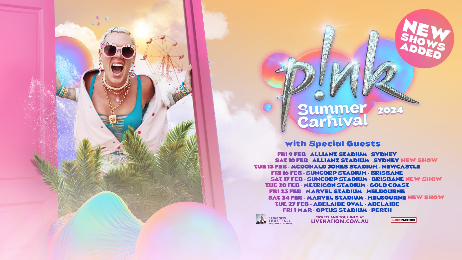Due to extraordinary demand, three-time Grammy Award-winning singer, performer, and international pop icon P!NK has added 3 new stadium shows on her massive Australian tour in February and March, 2024.