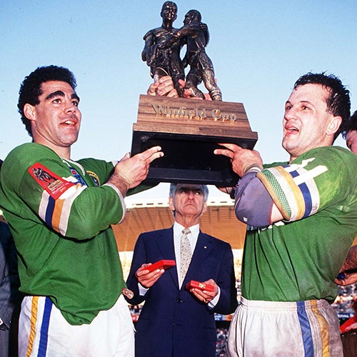 Captained by Wayne Pearce, the Tigers took 12-2 half-time lead. Play moved so fast that the commentators could barely keep up. With 20 minutes to play, Mal Meninga blocked a Tigers’ attack with an extraordinary try-saving tackle, then a field goal by Benny Elias hit the cross bar. The Raiders drew even at 14-14. In extra time, Steve Jackson broke two tackles and carried three defenders over the try line to secure a historic 19-14 win for the Raiders.