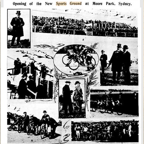The Sydney Sports Ground was opened by Sir Harry Rawson, the Governor of NSW, and Edward O’Sullivan, the NSW Minister for Works, on Saturday 3 October 1903. More than 300,000 loads of earth had been used to transform the site, formerly a rifle range for the nearby Victoria Barracks, into an oval and cycling track.
